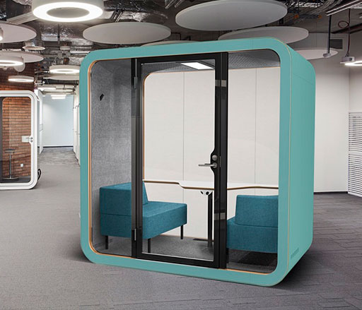 Kabincell Lucia XL Ofis Toplantı kabini 1 ila 4 kişilik kapasite ile gün boyu kullanım,Kapsüller açık alandaki genel gürültüyü azaltarak çalışanların verimliliğinin artırılmasına olanak tanır .